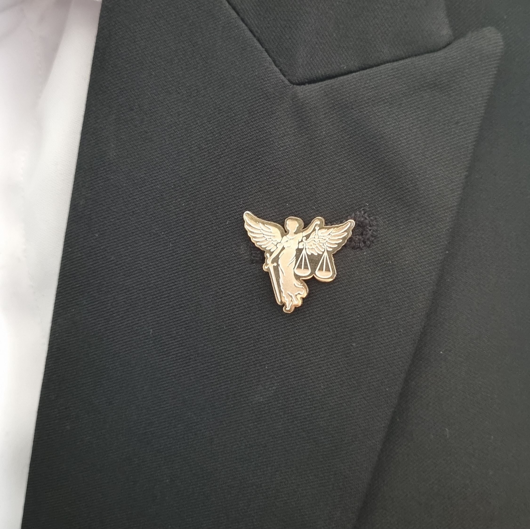 بج فرشته عدالت ویژه ی وکیل دادگستری ، حقوقدانان و حقوقخوانان گرامی جنس فلز برنج اسیدکاری شده و آبکاری طلا 24 عیار
