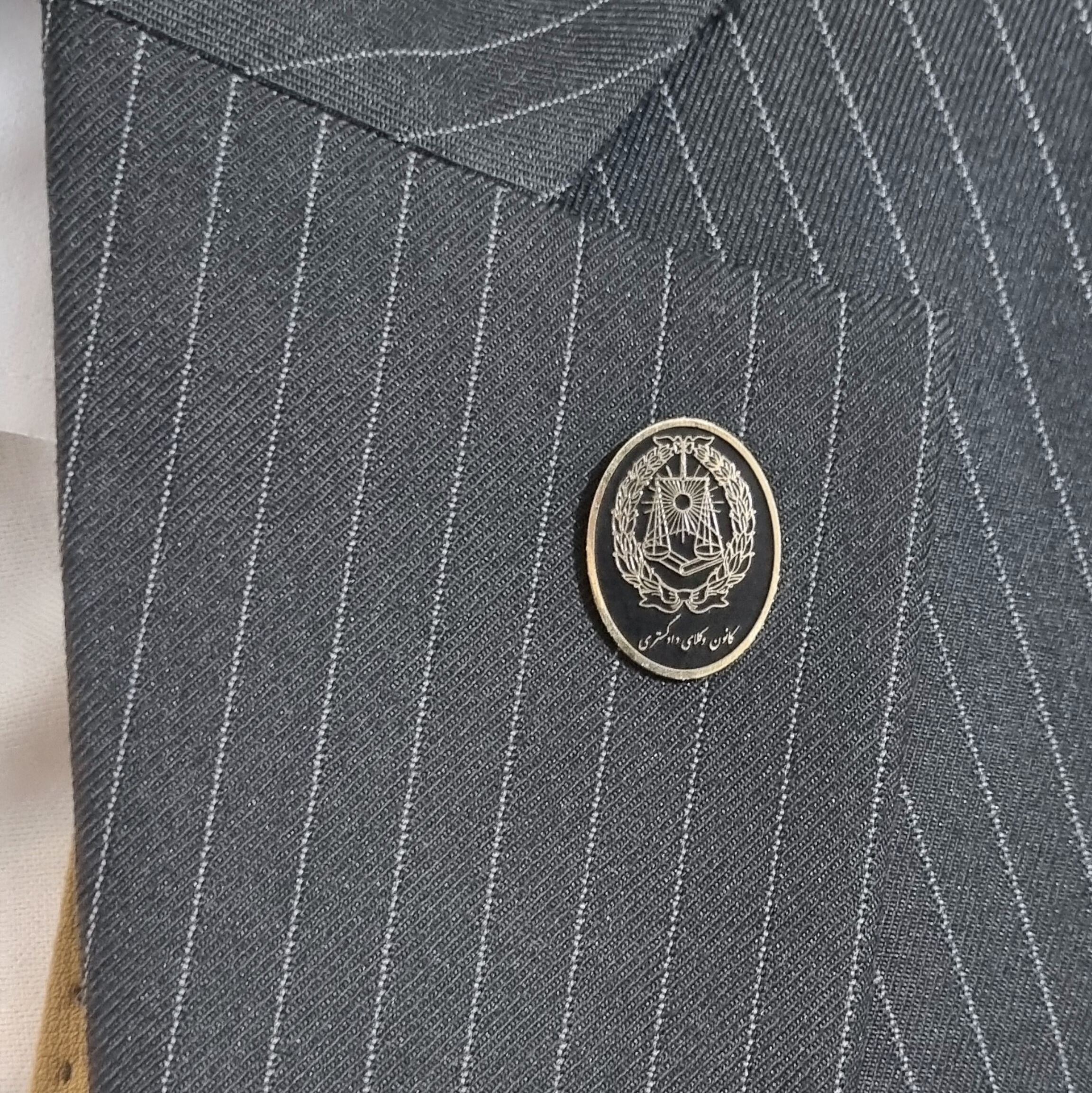 بج کت ویژه وکیل دادگستری ساخته شده از فلز برنج اسیدکاری شده با آبکاری طلا 24 عیار و روکش پلی استر