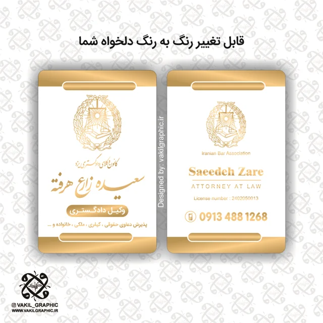 با کارت ویزیت حرفهای ویژه وکلای دادگستری، اولین تأثیر ماندگار را بر روی موکلین خود بگذارید. طراحی زیبا و شیک این کارت، نمادی از اعتبار و تخصص شماست. از جنس باکیفیت با چاپ عالی، این کارت ویزیت کلید جذب اعتماد و افزایش شبکهسازی حرفهای شما خواهد بود. همین حالا سفارش دهید!