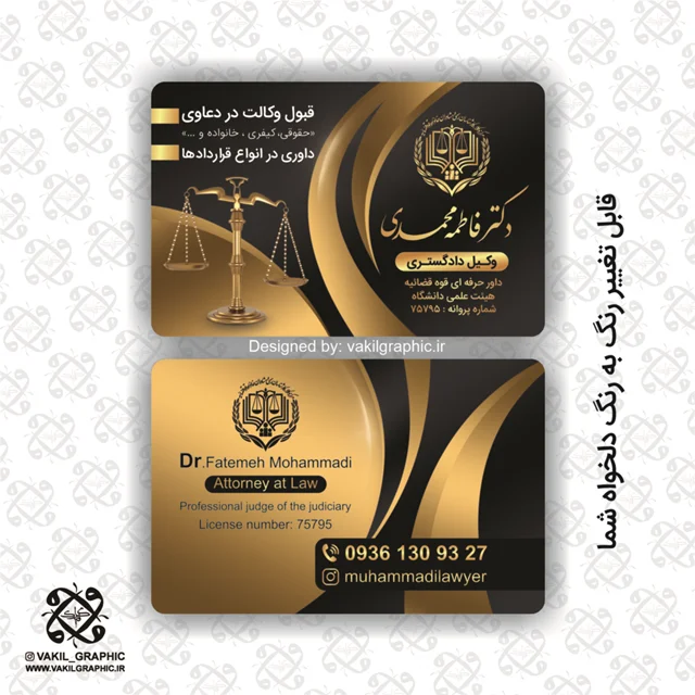 با کارت ویزیت حرفهای ویژه وکلای دادگستری، اولین تأثیر ماندگار را بر روی موکلین خود بگذارید. طراحی زیبا و شیک این کارت، نمادی از اعتبار و تخصص شماست. از جنس باکیفیت با چاپ عالی، این کارت ویزیت کلید جذب اعتماد و افزایش شبکهسازی حرفهای شما خواهد بود. همین حالا سفارش دهید!