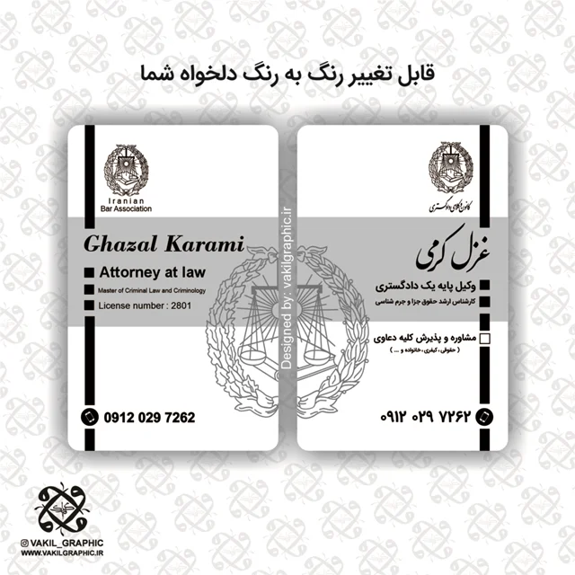 با کارت ویزیت حرفهای ویژه وکلای دادگستری، اولین تأثیر ماندگار را بر روی موکلین خود بگذارید. طراحی زیبا و شیک این کارت، نمادی از اعتبار و تخصص شماست. از جنس باکیفیت با چاپ عالی، این کارت ویزیت کلید جذب اعتماد و افزایش شبکهسازی حرفهای شما خواهد بود. همین حالا سفارش دهید!